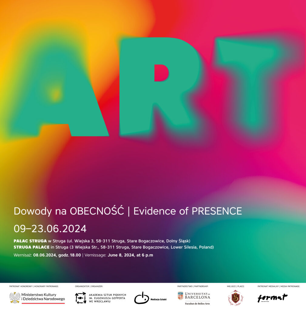 Tytuł wystawy w Pałacu Struga: Dowody na OBECNOŚĆ /09–23.06.2024/