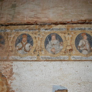 Na ścianie zachodniej są portrety 4 cesarzy rzymskich: Galba Otton, Witelusz i Vespazjan a na ścianie wschodniej jest 7 władców śląskich: Karol IV, Wacław, Zygmunt, Albrecht I, Fryderyk III, ubytek-prawdopodobnie Maksymilian I, Karol V i Ferdynand I. Nad każdym portretem umieszczono napis z maksymą władcy. Pod portretem jest napis z datą kończącą panowanie każdego cesarza. To dopiero początek odkrycia, wiemy już, że na bocznych ścianach (południowej i północnej) także znajdują się portrety, jednakże będziemy musieli trochę zaczekać na kolejne odkrycia.